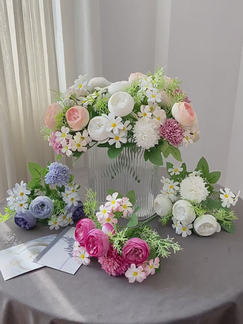 Bulk 12" Small Mixed Peony Daisy Mum Bush Bouquet for Table Floral Arrangements Wholesale