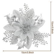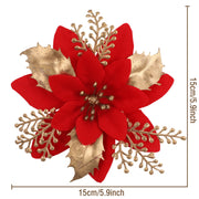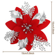 Bulk 12pcs Artificial Glitter Christmas Flower Poinsettia Ornaments Wholesale