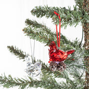 Bulk Christmas Ornaments Acrylic Transparent Bird Hanging Decoration with Pine Cones Pine Needles for Xmas Tree Decor Wholesale