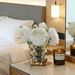 Bulk 7" Real Touch Rose Bouquet in Amber Glass Vase Floral Arrangement for Hotel Guest Rooms & Suites Wholesale