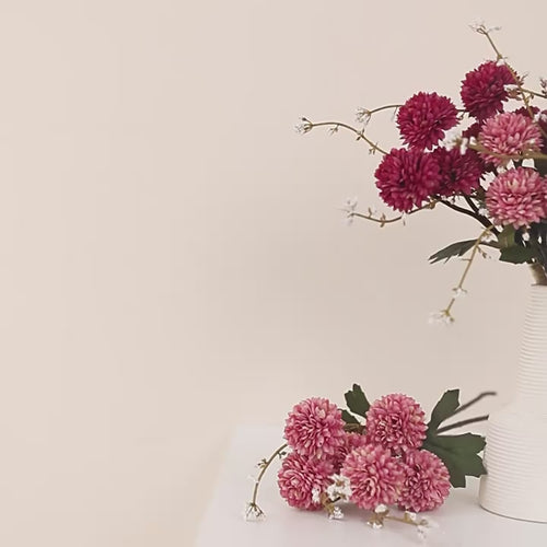 Bulk 12.2" Small Artificial Pom Pom Mums Bouquet Realistic Autumn Flowers for Fall Decor Thanksgiving Tabletop Wreath DIY Whoelsale