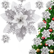 Pack of 100pcs Silver White Poinsettias Artificial Christmas Flowers Wholesale
