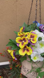 This pre - assembled hanging basket is filled with incredibly lifelike artificial pansies and ivy. Its stylish design makes it an ideal decoration for various spaces—your living room, patio, balcony, or garden, both indoors and outdoors. Blooming all year round, it infuses your home with a refreshing springtime charm.