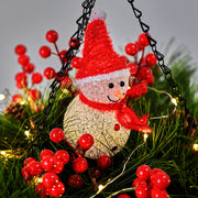 Bulk Pre-Lit Artificial Christmas Flowers Hanging Basket with Snowman Solar Lights for Outdoors and Indoors Wholesale