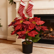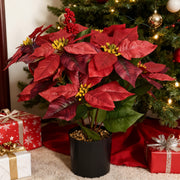Bulk 18 Inch Artificial Poinsettia Plant with Red Berries - Potted for Christmas Home Porch Garden Decor Wholesale