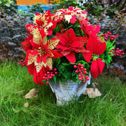 Bulk Exclusive Christmas Cemetery Flowers Poinsettia Bouquet Grave Vase with Angel Wings Wholesale