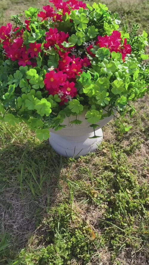Bulk 18 Bundles Spring Red Daisy Flowers and Clover Plants UV Resistant for Outdoors Wholesale