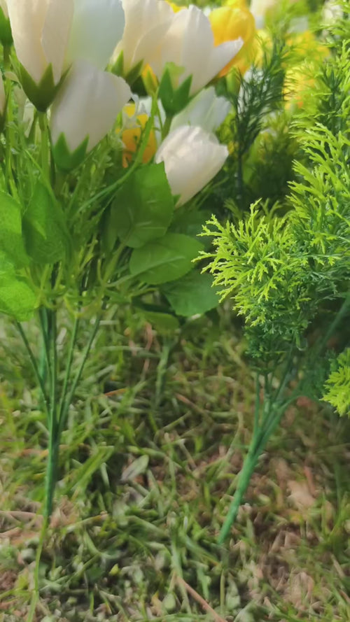 Package Contents: You'll be delighted to receive a comprehensive set that includes 8 charming white outdoor artificial flowers, 4 elegant yellow ones, and 12 lush greenery plants. This diverse collection allows for endless creative arrangements.