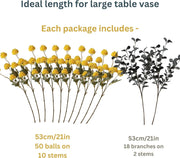 • Includes: 10 mum stems (50 blooms) + 18 eucalyptus stems