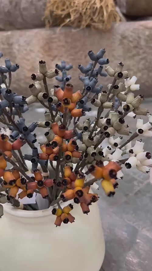 Bulk 300 Bundles 14.5" Artificial Eucalyptus Fruit Stems in Autumnal Hues Wholesale