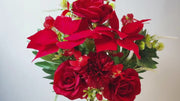 Exclusive design mixed flowers for Christmas. Featuring velvet poinsettia, silk rose, silk mum, wild flowers, pine cones and angel leaves. Bring the joy of Christmas fake flowers that will never brown.