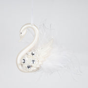 Bulk Simulated Feather Swan with Diamond Christmas Hanging Ornaments Wholesale