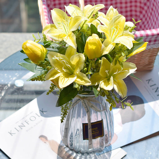 🌸 15" Tall · 12 Luxurious Stems · Vase Not IncludedElevate your space instantly! This lush mixed bouquet features 7 elegant lily blooms (3.5") and ...