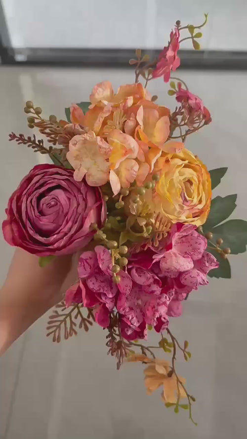 Bulk 12.8" Retro Peony & Hydrangea Mixed Faux Flower Bouquets Wholesale