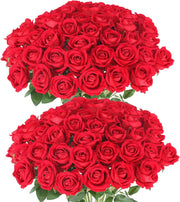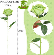 50PCS Premium Velvet Silk Roses - Realistic White Artificial Flowers for Wedding & Home Decor
