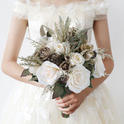 Bulk 9" Beige Vintage French Bridal Bouquets Rose Wedding Bouquets Wholesale