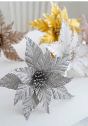 Bulk Christmas Glitter Poinsettia Flowers Picks 9.8" Sequin Artificial Flowers Wedding Christmas Tree New Year Ornaments Wholesale