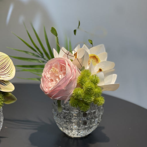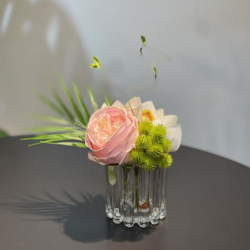 7.9" (20.1cm) Compact Glass Floral Bouquet - Commercial Hospitality Decor Elegant Tabletop Solution for Fine Dining Restaurants, Boutique Bars...