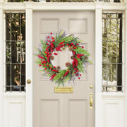 Bulk 16" Christmas Wreath with Red Berry Pine Needle Pine Cone Wreath Artificial Ornament for Front Door Wall Hanging Home Decoration Wholesale