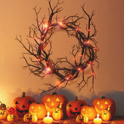 Bulk 17" Black Tree Branch Glowing Wreath for Front Door Artificial Plant Twigs Wreath Halloween Party Decoration Wholesale