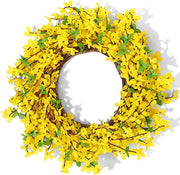 - Made from artificial forsythia flower that covers both the front and back, accented with brown durable twigs vine that cover the base of the floral wreath make for a timeless seasonal home décor.