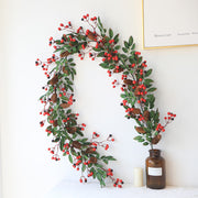 Bulk 71" Christmas Red Berry Poinsettia Ring Rattan String Garland Wholesale