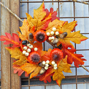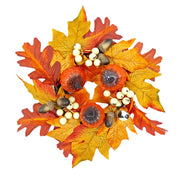Bulk Artificial Maple Leaf Pumpkin Tabletop Candlestick Wreath Candle Holder Rings Thanksgiving Harvest Festival Mini Centerpiece 12 Inch Wholesale
