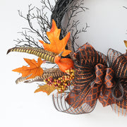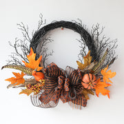 【Artificial Floral Wreath】With foam pumpkins, berries, bows. The overall look is consistent with the Halloween atmosphere, very suitable for Halloween