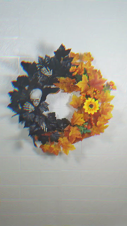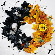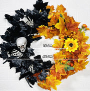Bulk Halloween Skull Wreath for Front Door Artificial Black Orange Maple Leaves Wreath Holiday Party Decoration Wholesale