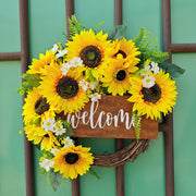 Bulk Sunflower Wreaths with Welcome Sign Artificial Flower Spring Wreaths Ornament for Front Door Farmhouse Home Decoration Wholesale