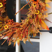 - 【Versatile Decor】This colorful floral wreath is suitable for front door, window, wall, fireplace and farmhouse decor. To hang this wreath wherever you need a touch of autumn to celebrate the season and holidays like Thanksgiving and Harvest Festival.