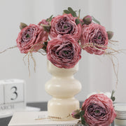 Bulk 5pcs 9.8" Retro Rose Stems with Burnt Edge Rose Bouquet Artificial Wholesale
