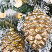 Bulk Christmas Ornaments Glitter Golden Pine Cones with Chain Xmas Glass Pendant Decorations Wholesale