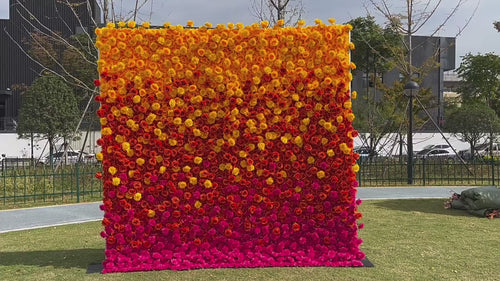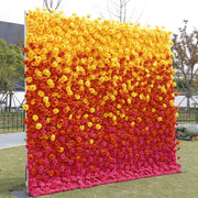 Bulk 5D Orange Yellow Fuchsia Rose Flower Wall Arrangement for Event Flower Wall Panels Wholesale