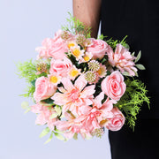 Bulk 9" Free-Form Bridal Bouquet in Soft Pink Rose Dahlia and Daisy Bouquet Wholesale