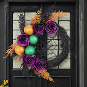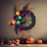 Bulk Halloween Purple Rose Grapevine Wreath Spider Web Artificial Plants Wreath Party Decoration Wholesale