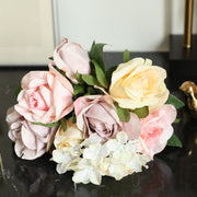 - Flower Type: Rose, hydrangeas and green leaves.
