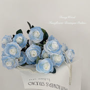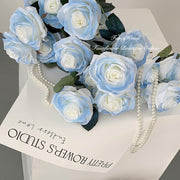 Bulk 18" Rose Stem Gradient Blue Artificial Silk Rose Flowers Wholesale