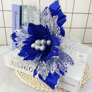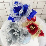 Bulk 11.8" Large Christmas Poinsettias Heads Artificial Christmas Flowers Glitter Flowers Mall Prop Wholesale