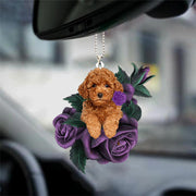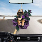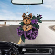 Dog in Purple Rose Car Mirror Hanging Car Interior Accessories