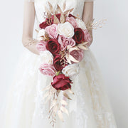 Bulk 9" Cascading Rose Bridal Bouquet Pink and Red Wedding Bouquet Wholesale