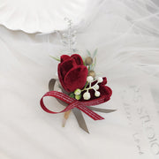 - Bridal Focus: For the bride, this corsage is a charming focal point that enhances the overall beauty of the bride. The combination of velvet and tulips creates a romantic and timeless charm, perfect for joyful occasions.