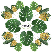 Bulk 66pcs Palm Leaves for Tropical Party Greenery Golden Leaves Artificial Wholesale