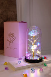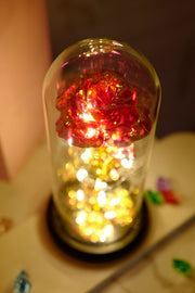 - 🎁Light Up Mother's Day Gifts: The Flower in glass dome is wrapped around an LED Strip light, Powered by 3 PCS AAA powers(Not included). Led strip light bright warm white lighting. LED light can use in daytime and nighttime for home room decorations or create romantic atmosphere.