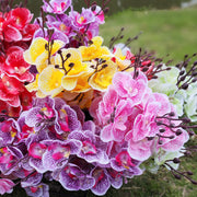 Exclusivo a granel 17" 4 arbustos flores artificiales Phalaenopsis mariposa orquídea arbusto para exteriores
