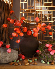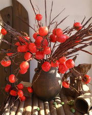 Venta al por mayor de frutas artificiales de ramas de árboles de tallos largos de caqui de 37 "a granel