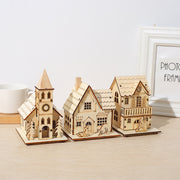 Bulk 3pcs Glow Cabin Set with Church Elk DIY Gifts for Xmas Tree Table Decor Wholesale