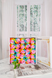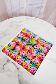 Bulk 25 piezas 2.7 "Cabezas de jabón Rainbow Rose con tallos desmontables al por mayor