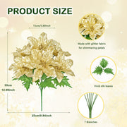Introducing our 7-Head Christmas Artificial Flowers with a bundle height of 13 inches – the ideal choice to elevate your holiday decorations with lifelike beauty and practical durability. Measuring 13 inches in bundle height, each set features 7 exquisitely crafted fake poinsettias, designed to capture the vibrant essence of fresh Christmas blooms.