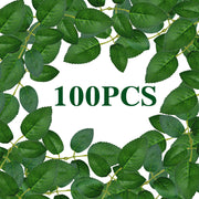Hojas verdes artificiales 15 piezas de seda verde a granel hojas de flores rosas falsas
